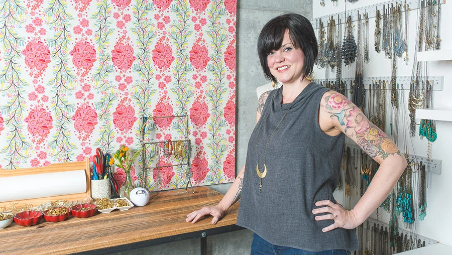 One of her favorite parts of the business is the care she takes with her wholesale and online customers. One of the ways she shows this is in how she packages the jewelry she ships. It pleases her to take special care: “I want them to feel like they’re opening a gift when they open a package from Harlow.”